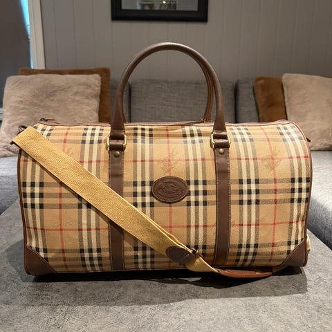 Pent brukt Burberry lommebok. Skinnet har ingen bruksslitasjer, men det er noen striper på Burberry merket. Mål: 14 cm lang x 10cm bred når lommeboken er lukket. Eget bur med glidelås, et bur med sedler og plass til 10 kort. Førpris 4495kr.