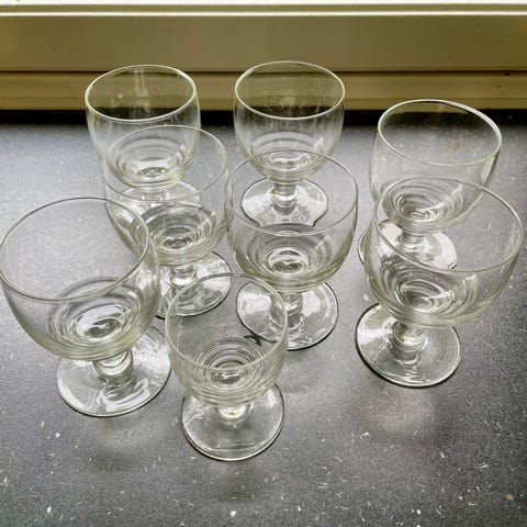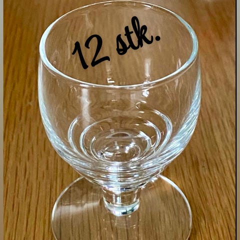 18 stk helt like Arvid glass fra Hadeland glassverk. Hetvinsglass. Produsert i perioden 1943-1970. Designet av Ståle Kyllingstad.