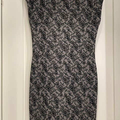 Nydelig blondekjole med sløyfe og volanger bak. Minner veldig om Valentino sin klassiker. Kjolen er svart med lys med kremfarget linning og er aldri brukt, jeg har bare vasket den en gang.
