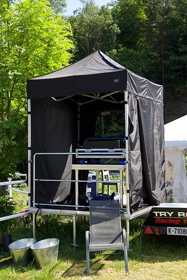 Klappbord i polyetylen og pulverlakkert stålunderstell.