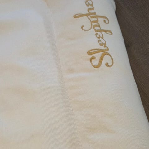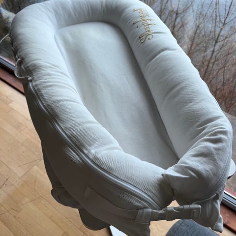 Selger babyrede fra Sleepyhead. Bruksmerker forekommer (se bilder), men ingenting som går utover bruk. Ingen hull.