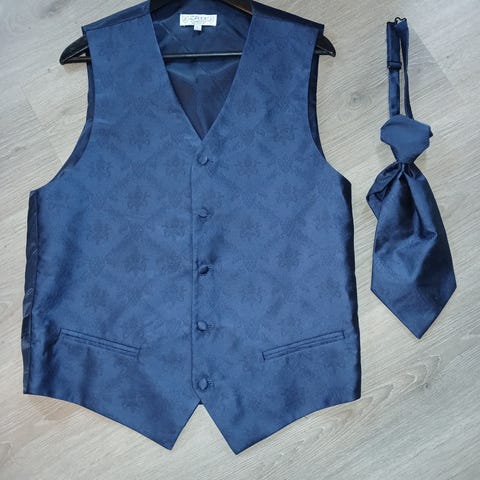 NY PRIS: Brokadevest, tørkle og kravat (sånn fancyslips) til bryllupsdress for herre selges samlet for kr 700. Kjøpt ny for 1700kr og brukt bare en gang😀 Står ikke strl, men jeg bruker L til vanlig.