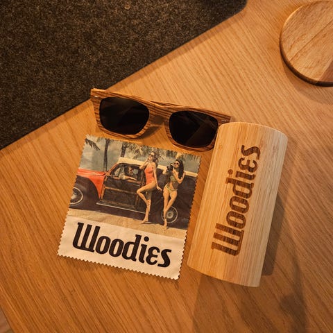 SWELL Design Solbriller. Nye. Ubrukte. Bambus material med farget glass.