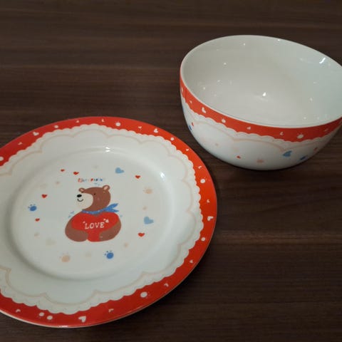 Selger en søt hjerte-skål og et matchende krus, begge av porselen. Vintage Retro (Selges dessverre uten godteposen 🫣)