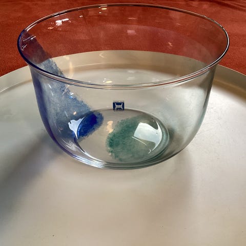 Selger sort bolle fra Magnor (150), blå bolle fra Hadeland (150) og lysestake fra Magnor (70). Selges stykkvis eller til en god pakkepris.