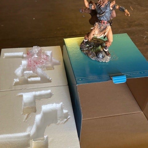 Viking figur med sverd i glassmonter 56x56 cm dybde 8 cm