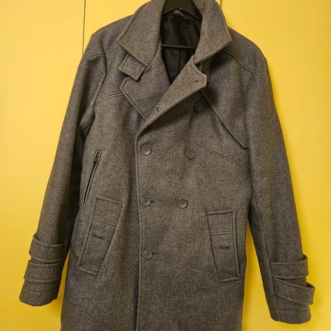 Pent brukt ytterjakke til herre selges. Vattert, varm og med avtakbar hette (glidlås). Jakken har nettopp vært vasket på 30 grader (ullprogram). Jakken er brukt tre sesonger og er størrelse large.