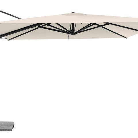 Denne høykvalitets Roma parasollen kan enkelt åpnes og lukkes, takket være sveivsystemet. Vinkelen på parasollskjermen kan justeres ved å skyve sveivhåndtaket langs stangen. I tillegg kan den fritthengende parasollen roteres 360 grader ved å vri på knappen ved siden av håndtaket. Alle disse funksjonene muliuggjør at denne fritthengende parasollen kan effektivt gi skygge på ulike tidspunkter dagen.