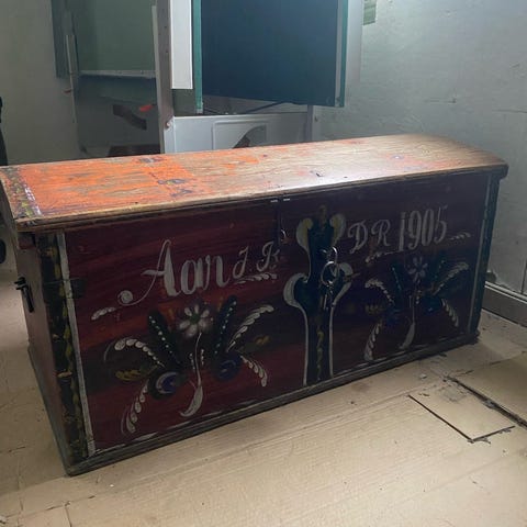 Selger denne antikke kisten fra 1914 fra Vosseområdet. Liten og veldig fin som dekorasjon. Mangler nøkkel til den, men er åpen.