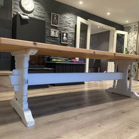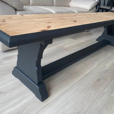 Landingen langbenk leveres med 60 mm tykk rustikk plate.