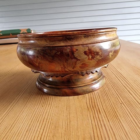 Gammel dreid trebolle-eggeglass-Skål m/stett