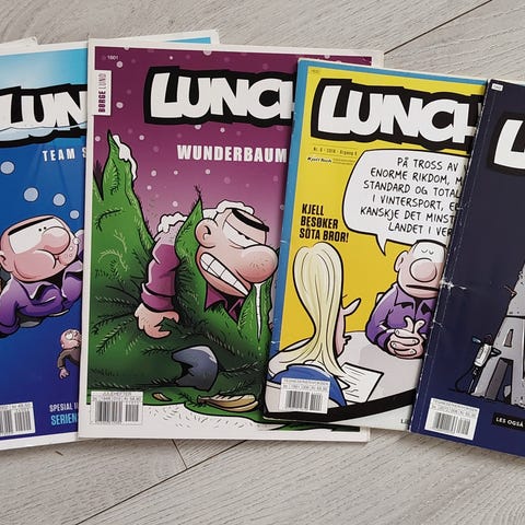 Selger diverse Lunch blader, alle er som nye. Er blant annet det første bladet.