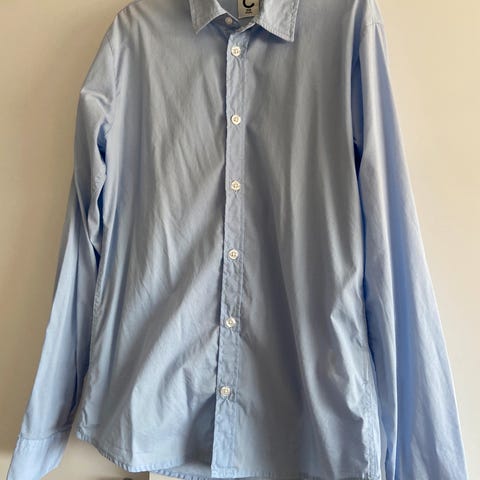 Lyseblå bomul skjorte med brune knapper fra M&S , brukt kun en gang i størrelsen 158 ( 12-13 år) Kan sendes, kjøperen betaler porto