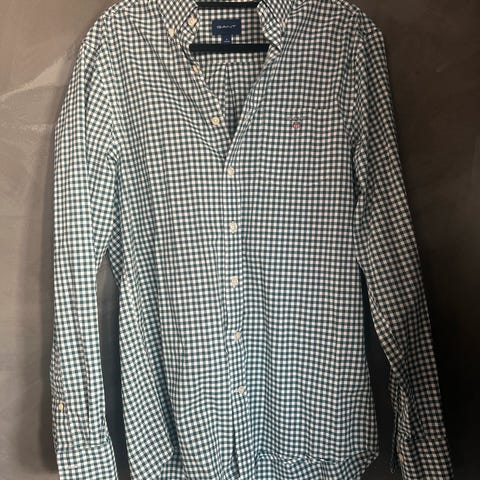 Skjorte fra Gant selges. Fremstår som ny. 100 % bomull. Button down-krage med knapper. Klassisk passform, Regular fit. Passformen rundt midjen er rettere og lengre enn Slim-fit. Passer for de fleste kroppsformer. Brystlomme, opphengshempe i ryggen med Gant logo. Kommer fra røykfritt hjem.