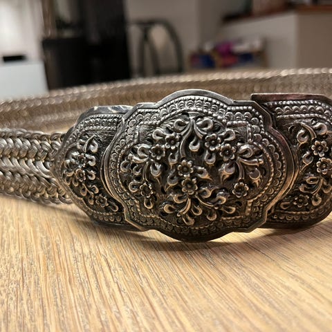 Selger et håndlaget belte i sølv ( er ikke ekte sølv )