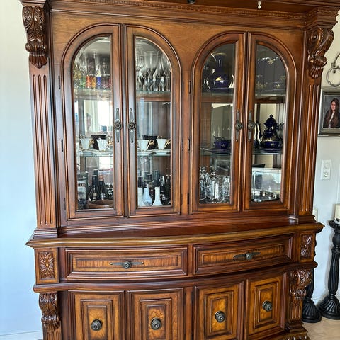 Nydelig håndlaget italiensk vitrineskap i nøttetre vurderes solgt.