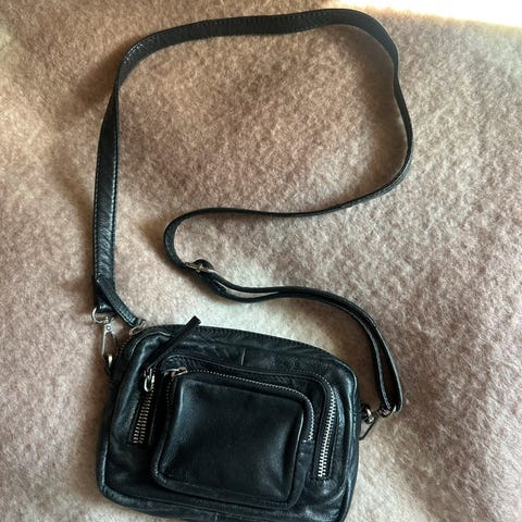 Lite brukt, svart håndveske fra Object i semskett skinn. Lang rem følger med.
