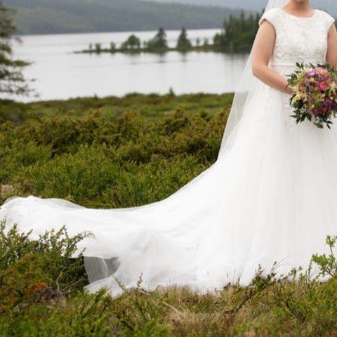Nydelig Mori Lee brudekjole selges grunnet feil str. Dette er virkelig drømmekjolen med lommer og en nydelig korsett😍