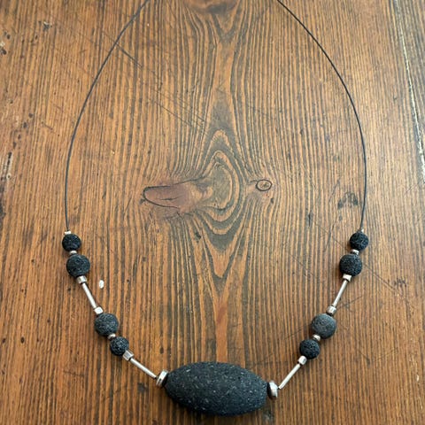 Mørk blå "sand stone"/stjernestein på søvfarget streng.