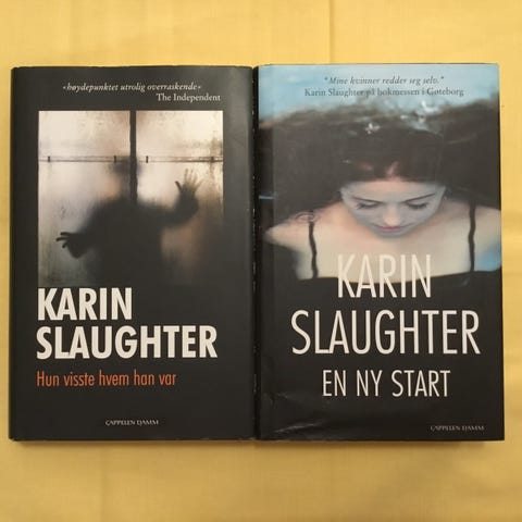 Karin Slaughter: Bøkene fra N. W. Damm & Søn / Cappelen Damm, Oslo: Kr. 50,- pr. bok.