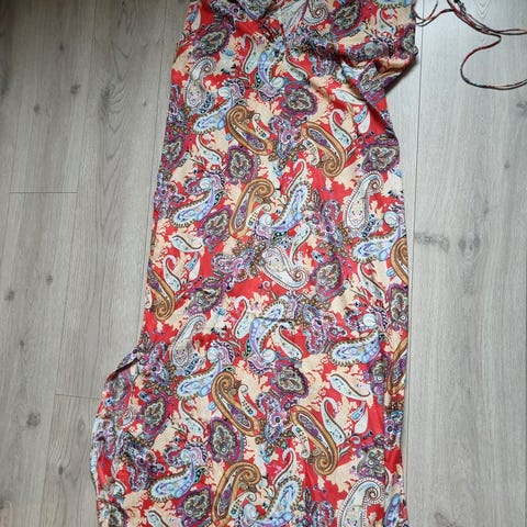 Selger en nydelig hvit og blå paisleymønstret halterneck kjole fra Barfota i str. S/M for kun kr: 200. Denne er helt ny og kostet ny kr: 1199.