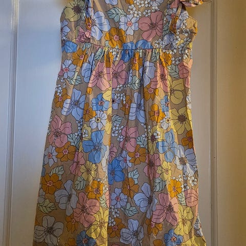 Selger en søt blomstrete kjole, str 128/7-8 år, for 150 kr.