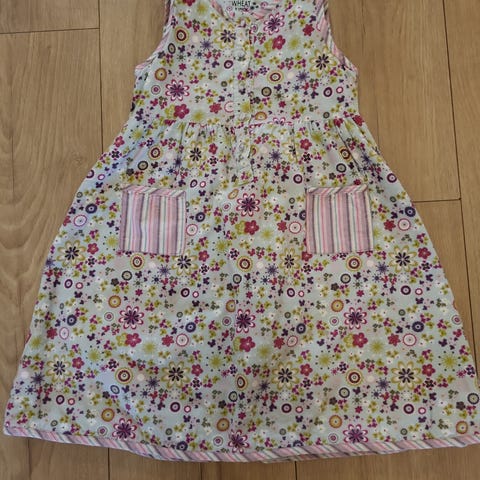 Selger en søt fotsid rosa blomstrete kjole fra WHEAT, str 6 år / 116, for 200 kr.
