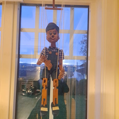 Eldre Pinocchio sprelle mann. 1 meter høy, 60 cm bredde.. selges for hb over 1000kr