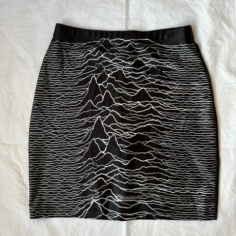 i svart og hvit, størrelse ca medium. Veldig kort, når til begynnelsen av benet. Aldri brukt.