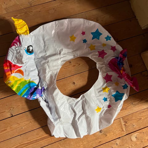 Helt ny oppblåsbar enhjørning. Fin og morsom sommerleke for både barn og voksne.