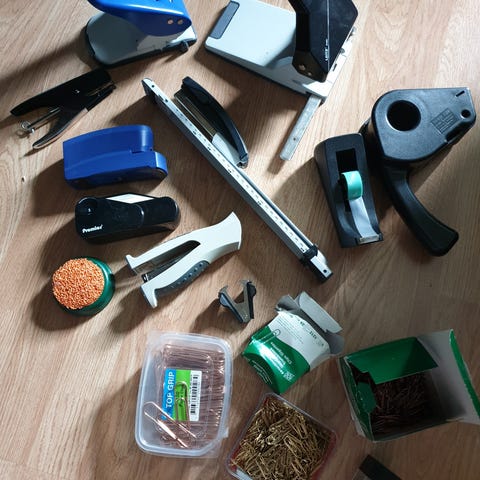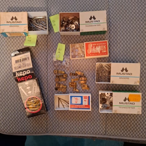 Diverse kontorrekvisita selges.