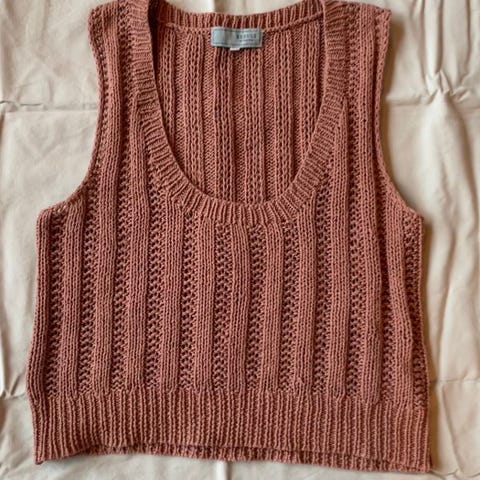 - Ubrukt! (Pristagg på). Nydelig rosa lin-vest m/blonde-og "nagle"-dekor, stikklommer, splitt bak.