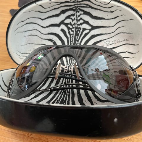 Nesten nye Roberto Cavalli solbriller selges rimelig da de ikke lenger blir brukt. Pusseskinn og etui medfølger.