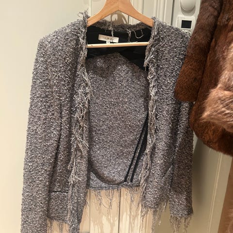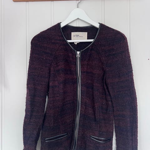 Noe brukt burgunder/svart ulljakke. Skinndetaljer på glidelåsen. Isabel marant str 3.