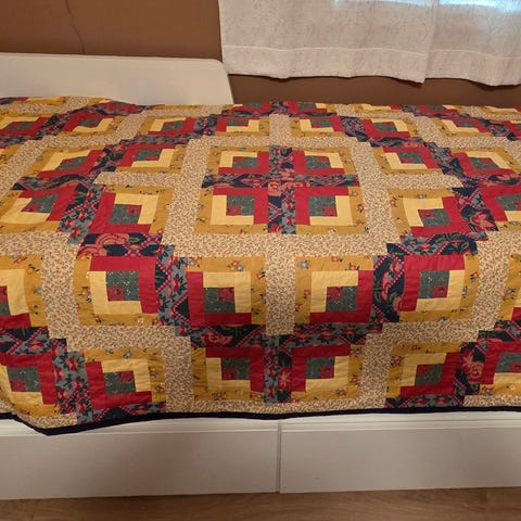 Sengeteppe i lappeteknikk til dobbeltseng, vattert, str 240*200 kr 3000