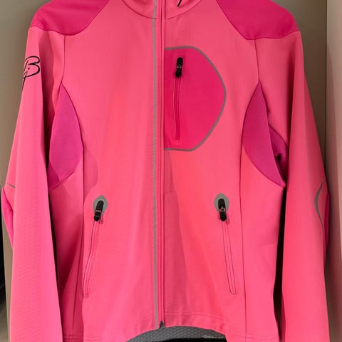 Beskjedent brukt sykkeljakke med god lengde i ryggen og lommer bak. Tommelhull på mansjettene. Ingen bruks- eller slitasjemerker.