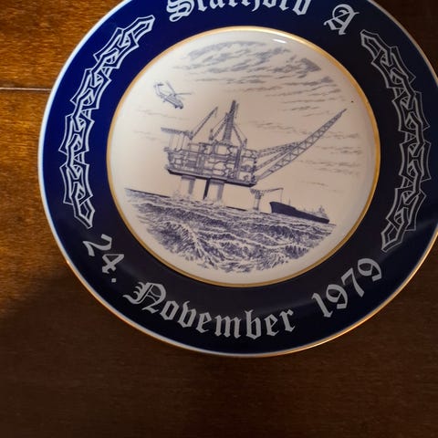 Platter fra Porskerunn porselen , av Statfjord A. B, og C