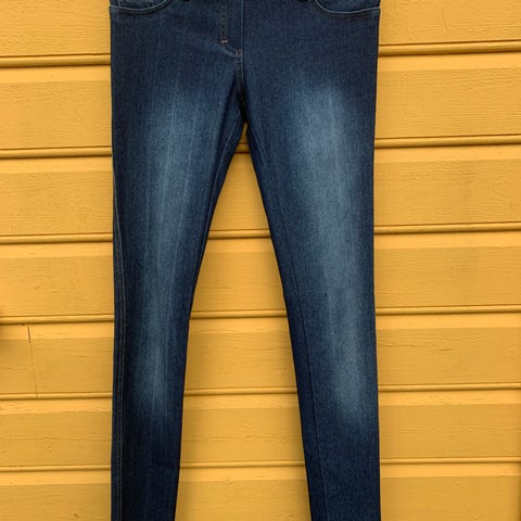 Herlig jeans fra Lau Rie i super kvalitet. Mellomblå. Slim-modell/tightsmodell. Ingen lommer, ingen glidelås - strikk i liv. Trekkes rett på. Superstretch og behagelig. Brukt kun èn gang - som ny.