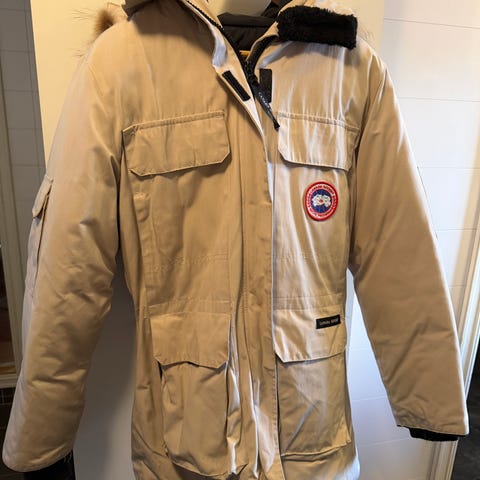 Pen beige canada goose jakke selges. Brukt til jente 16 år en sesong passer liten dame/ jente ca 150-165 str xx small eller small. Jeg er 165 og str s- medium og den er litt trang til meg, men perfekt på lengde armer og lengde jakken. Ingen skader eller synlig slitasje.Jakken er ikke renset så kjøper må eventuelt besørge dette om rens er ønskelig. Av denne grunn selger jeg den rimeligere enn jeg ellers ville gjort. Selges til 1 bud over 1700 kr. Ny pris er ca 8000. Kjøpt i 2016. Brukt vinter sesongen 16-17 men ellers hengt i skapet.