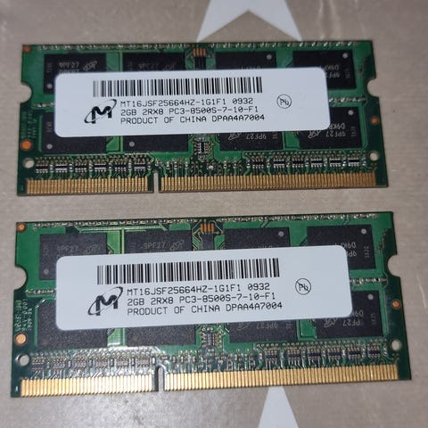 Micron DDR3 PC3- 8500 2x1 Gb. Fungerer fint.