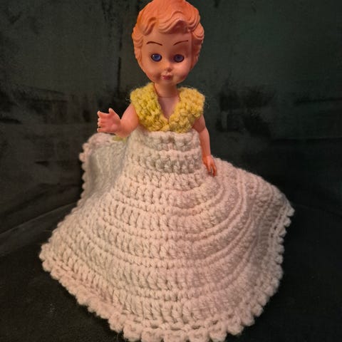 Eggvarmer - dukke med plass til 4 egg. Virker ikke som den er brukt, sannsynligvis laget i 60 åra. Kjøper betaler eventuell frakt.