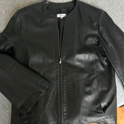 Ubrukt Gerry Weber skinnjakke i sort "preget" skinn, str. 38.