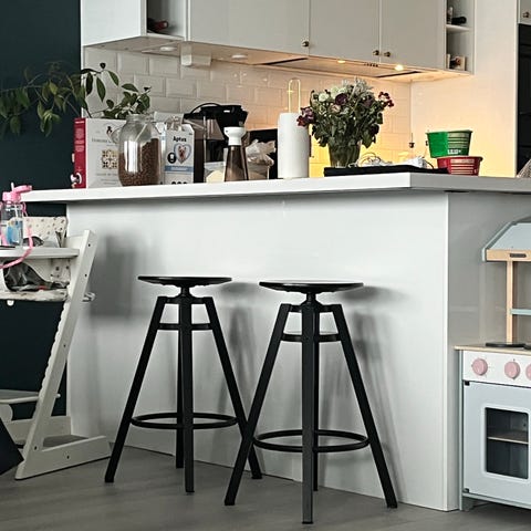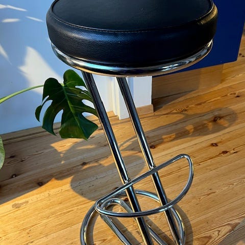 To pent brukte barstoler kjøpt på Living selges. Pent brukt, solid og robust design. De er samme type, men med litt ulik svartnyanse på setet. Normal bruksslitasje, se bilder.