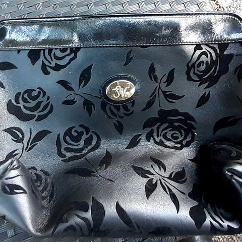 (brukt 1 gang)Toalettmappen’s mål er: 34lang/22høy/ 9 bred. Sminkepungens mål 20 cm lang/13høy/ 5 bred. Rålekkert sett i sort lettstelt stoff med leopard.