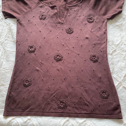 Selger en knapt brukt mørk blåmelert t-skjorte, str small, for 95 kr.