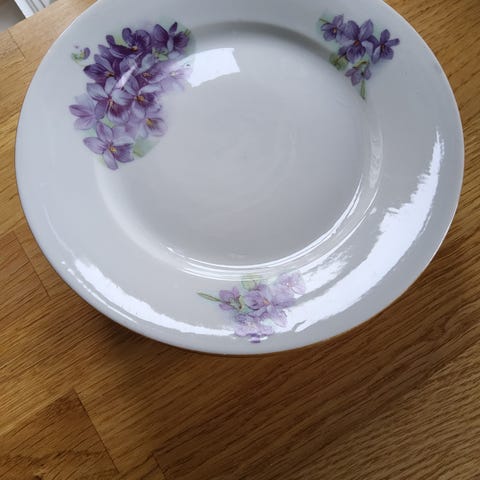 Fin suppetallerken. Normal bruksslitasje.. Ingen nagg. Ingen krakkelering. Litt, ubetydelig slitasje på gullkant.