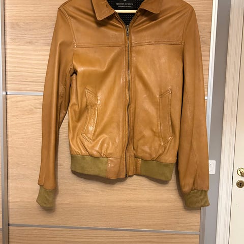 Lite brukt bikerjakke i mykt og behagelig skinn fra Maison & Schotch. Nydelig lys grå/hvit med sorte glidelåser og flotte detaljer som er typisk for Scotch. dyreprintmønster på foret. str. 2 som tilsvarer 38. Nypris kr. 4000. selges kr. 800