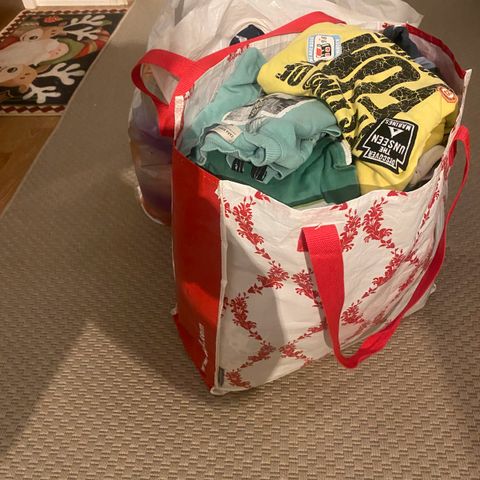 En stor kartong gutteklær str 4 år selges kun 299 kr.
