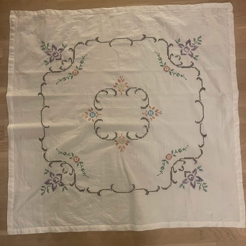 Kaffeduk ca 80/90x80/90 cm kr 300,- ( NB: duken på bilde med de solgte duker )