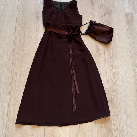 Nydelig silkeforet kjole Str 34. Kjolen er nyrenset, og fremstår som ny da den kun er brukt 1 gang.